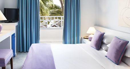 They provide every modern comfort and convenience, including satellite flat screen television, air conditioning, safety deposit box, fully stocked mini bar, direct dial phone and free internet access. Also, upon request, DVD player and fluffy bathrobes with slippers. All suites and rooms open out to a balcony or veranda overlooking either the pools or the gardens.