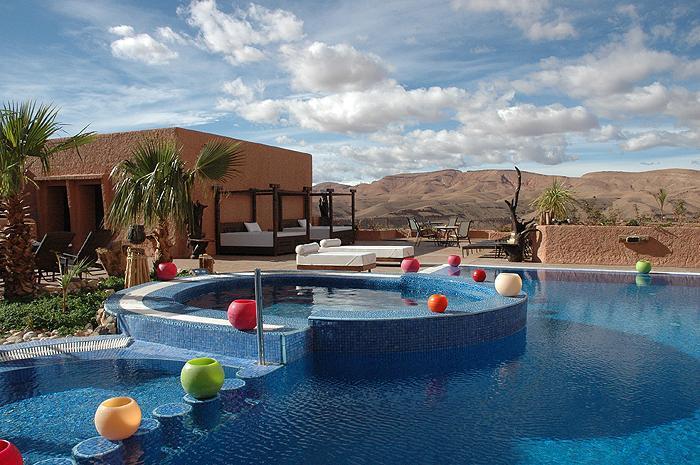 The hotel has 104 rooms all with air conditioning and suites with a private terrace and Jacuzzi. All rooms feature en suite bathroom, minibar, satellite TV and hairdryer. All the accommodation has views of the Dades Valley and the suites have a terrace.