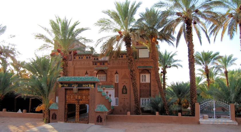 The Riad Dar Sofian is surrounded by palm trees, just on the quiet edge of Zagora, set in the heart of the Zagora palm grove. This high quality kasbah guest house offers modern facilities in a traditional style, an outdoor pool and a delightful terrace overlooking the palmeraie.