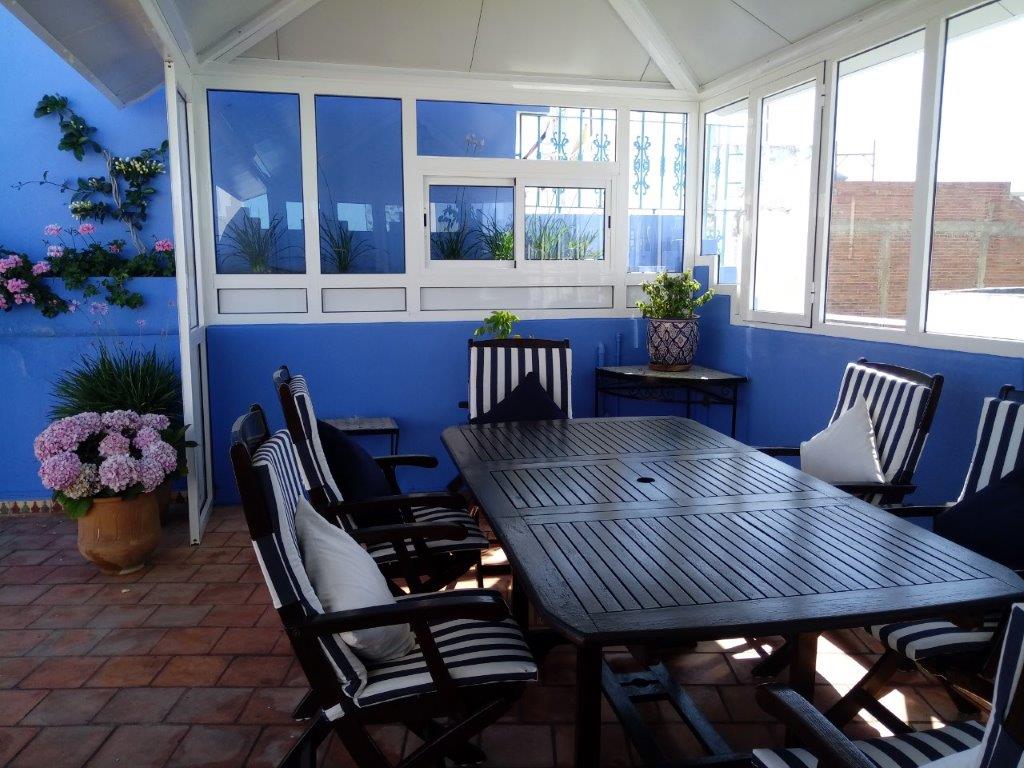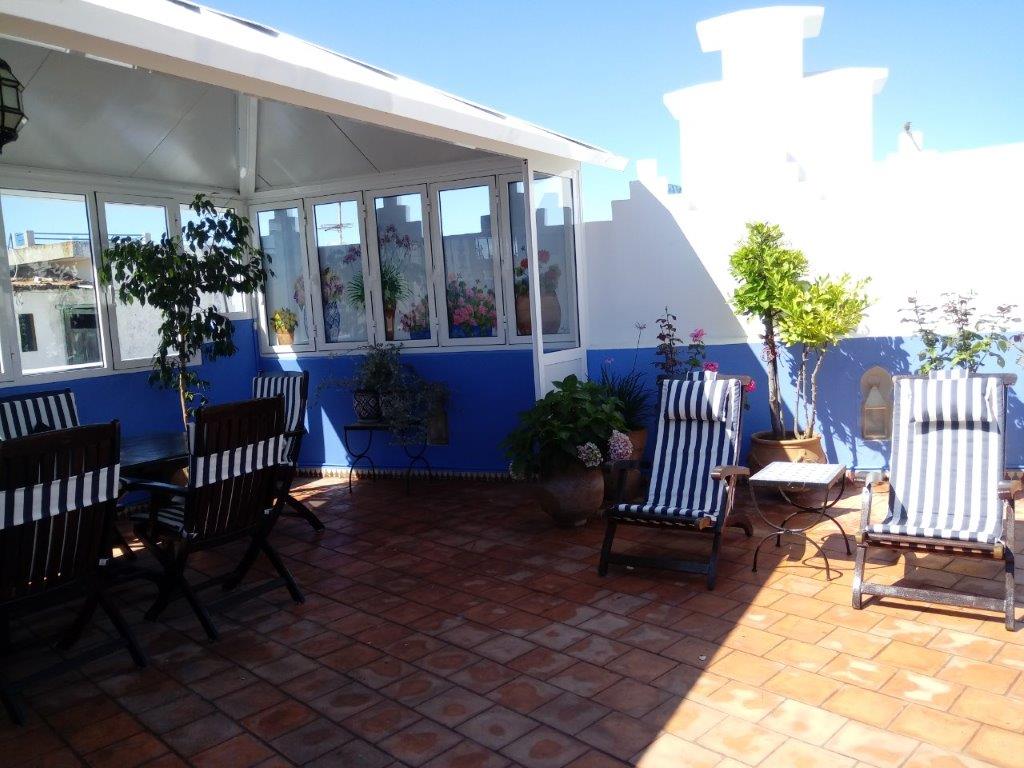 Large terrace overlooking Asilah, small lounges inside the property. Parking is close to the property.