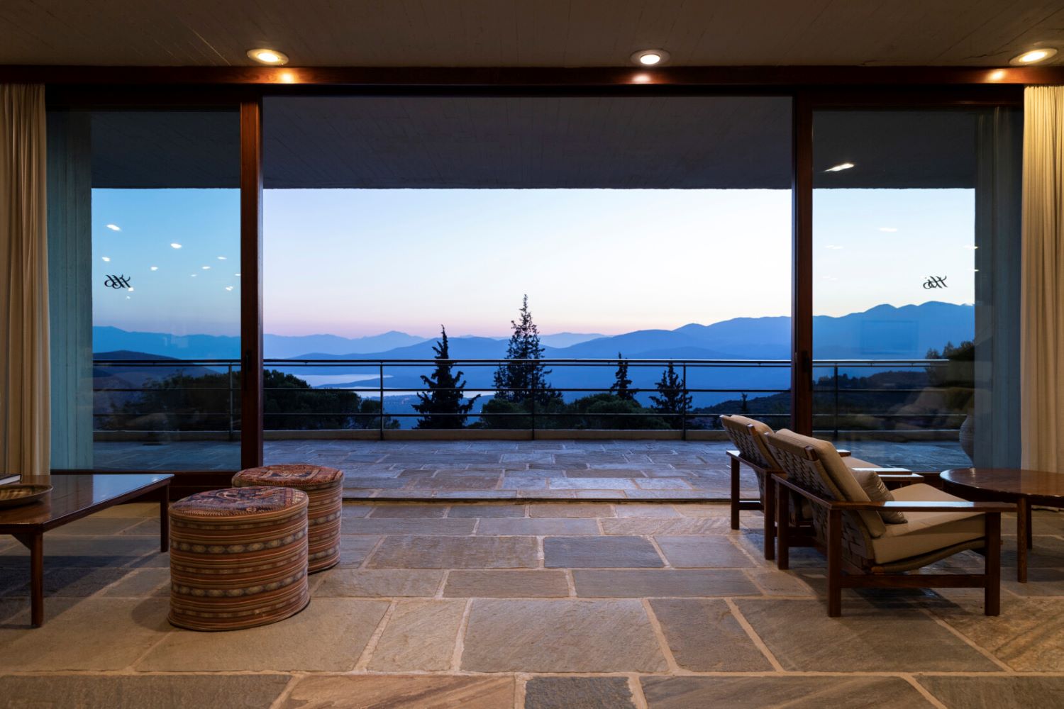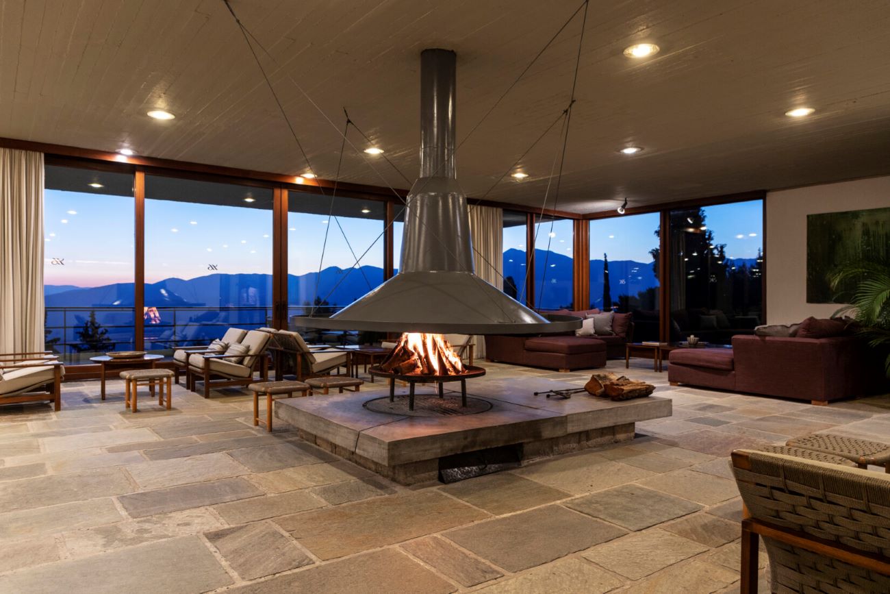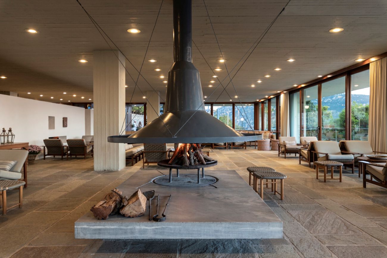 From the lobby, guests are invited to unwind beside the central fireplace, soaking up the warm and welcoming atmosphere while admiring the views.