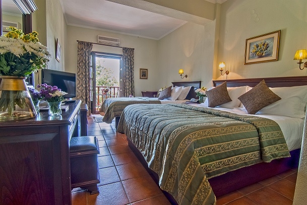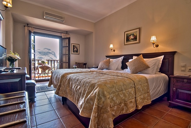 All 24 rooms are spacious and offer a magnificent views to the mountains and the Meteora rocks. They all have air conditioning, heating, wifi, satellite TV, safe, mini bar (fridge), telephone, hairdryer, telephone, and balconies with panoramic views.