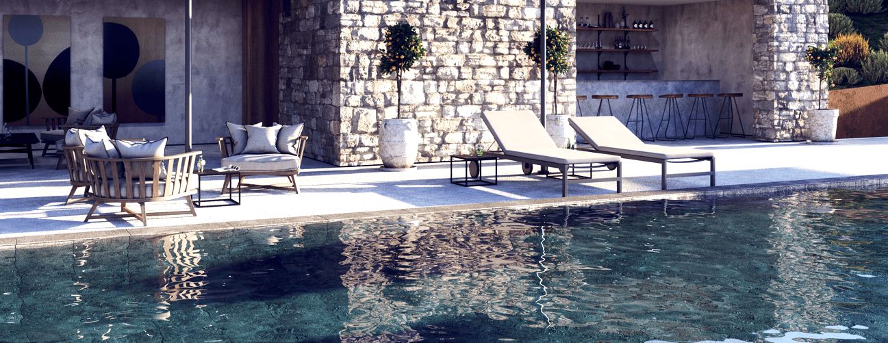 • Villas  - 58sqm over two floors. Private outdoor pool; private terrace and garden; separate living and sleeping area; kitchenette; king size bed.