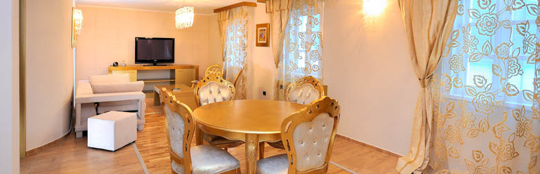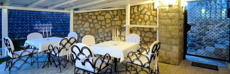 The complex is composed of a small and a big house. Some of the suites and the wellness centre, with Jacuzzi and the Turkish bath, are located in the smaller house. The outdoor pool is located in front of the smaller house. The rest of the suites, the restaurant and business office are situated in the bigger house.
