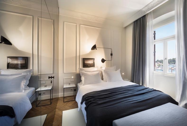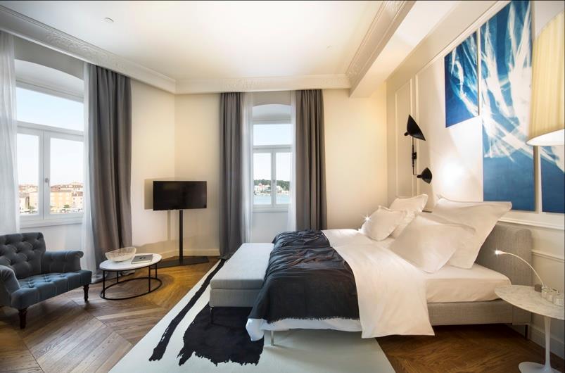 The Hotel Adriatic is a new boutique hotel right at the heart of Rovinj, located on the main square, 15 minutes away from the nearest public beach. Apart from owning an admirable collection of works of art, the Adriatic Hotel is one of the few hotels whose works of art were created exclusively for those premises.