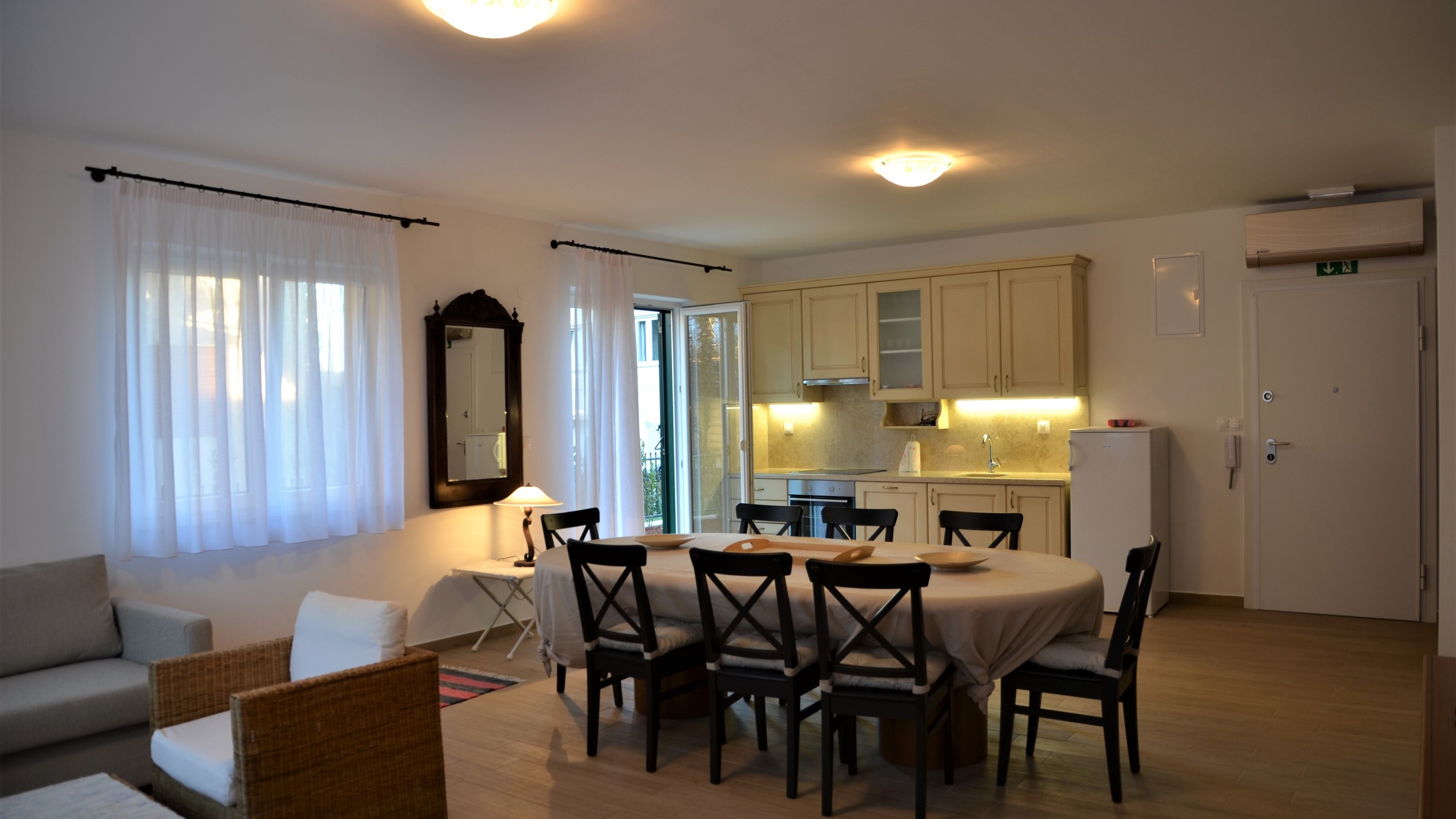 Villetta Istriana - this newly built, private and secluded villa is just ten minutes walk away from the medieval city of Rovinj, and is a hidden gem! This 100 sqm. apartment has direct access to a private garden which has a children's swimming pool. This accommodation comfortably sleeps six persons, with a possibility of extra beds for children. It would suit two families with grown up children or even three couples with smaller children. The custom made modern open plan kitchen and huge dining table offer the opportunity for long relaxing summer evenings. There is also an outdoor BBQ area.
