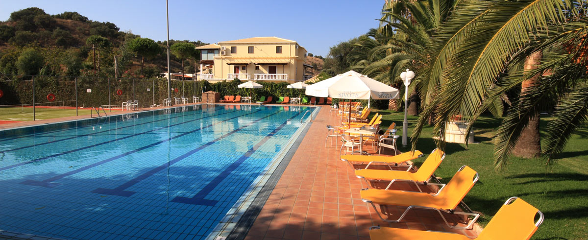 The Hotel Sivota is a good family hotel, located in a quiet area close to the centre of the resort, 10 minutes from the nearest beach and 5 minutes from the port. The landscaped gardens, playground, large swimming pool and tennis courts make it ideal for families.