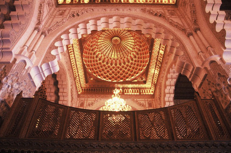 The Art Deco area is situated to the east of the medina where you can visit several locations which give the city its unique architectural character: Mohammed V Place, Arab League Park, the wide palm tree lined boulevards… for example, the Villa des Arts, an Art Deco style house built in the thirties which is surrounded by a 2500m² garden and the Wilaya, the administrative headquarters, built between 1927 and 1936 by Marius Boyer. The panelling in rare woods, the multi-coloured zelliges (ceramic mosaic) and the leather adornments have particularly benefited from recent restoration. It is built around a central triple patio embellished with a tropical garden. Two monumental paintings by Jacques Majorelle hang in the main staircase. You can have a unique view of all Casablanca from the top of its 50m high tower.