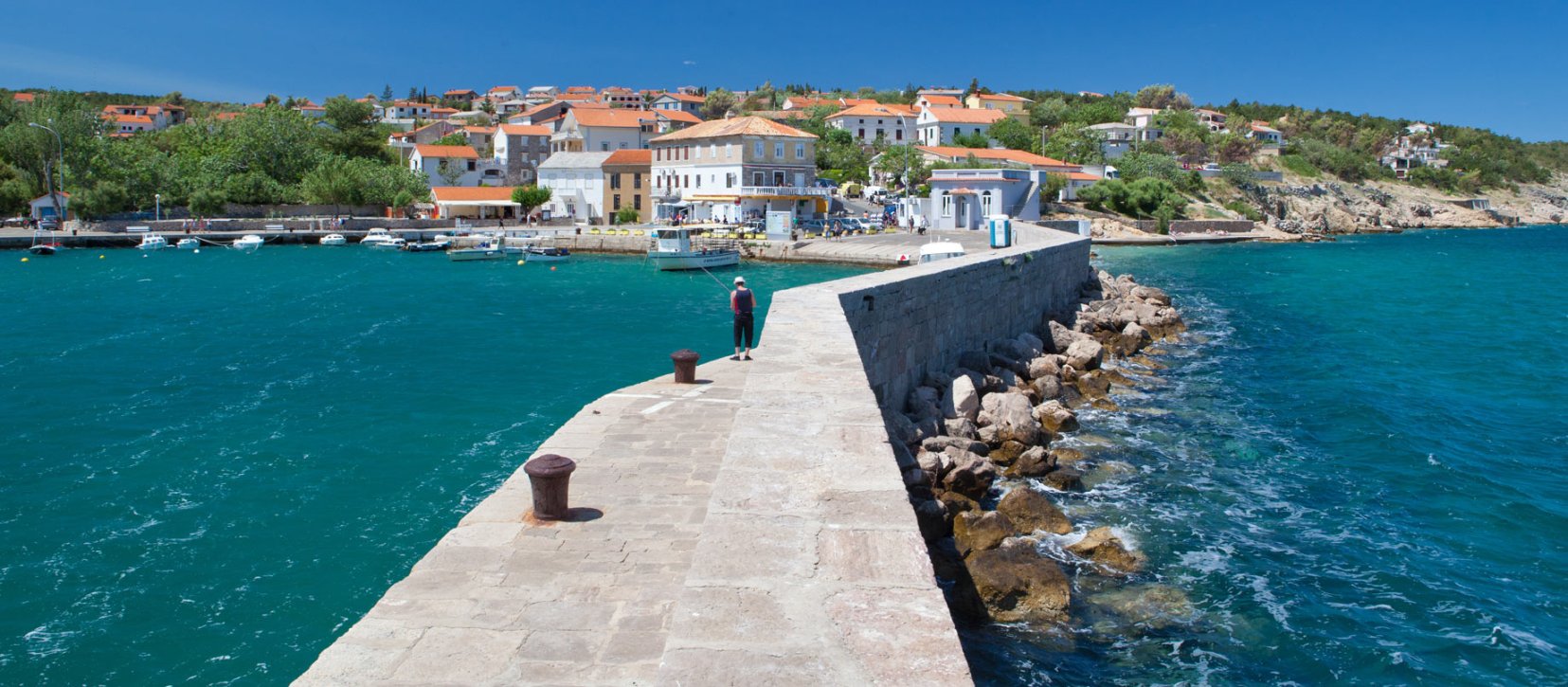 Krk enjoys one of Croatia’s longest tourist seasons thanks to its mild climate and wide range of activities. Visitors can enjoy scuba diving, water‑skiing, wakeboarding, tennis, quad‑bike routes, and over 130 km of cycling trails. Inland, the Biserujka Cave offers an interesting natural detour, while boat trips and charters provide easy access to nearby bays and islets.