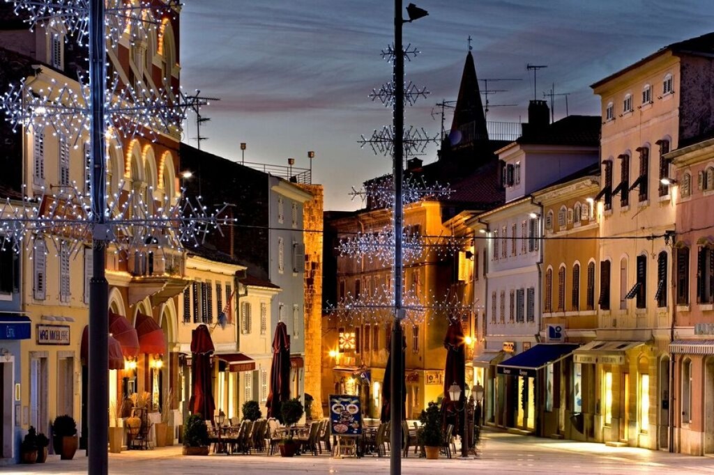 Today, it is surrounded by large hotel complexes taking advantage of its less intense Mediterranean micro-climate but its historic centre is worthy of exploration and is easy to wander around on foot where you will see much evidence of Roman, Byzantine and Venetian architecture. The landscape has rich Mediterranean vegetation, with pine forests. The fertile red soil is ideal for the production of organic foods, olives, grapes and quality wine varieties such as Malvasia, Gamay, Merlot, Pinot, and Teran, an important part of Porec economy.