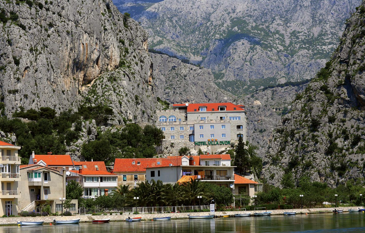 The lovely Villa Dvor was originally built in 1937 by a rich merchant as a private residence but in 2002 the family Ćurlin fully reconstructed and refurbished Villa Dvor into a boutique hotel, keeping much of its traditional architecture. Its unique position offers a magnificent view of the ancient town of Omiš, the Adriatic Sea, the Cetina River Canyon, the peaks of the Mosor Mountain, the ancient Republic of Poljica in the north and across to Brac Island.